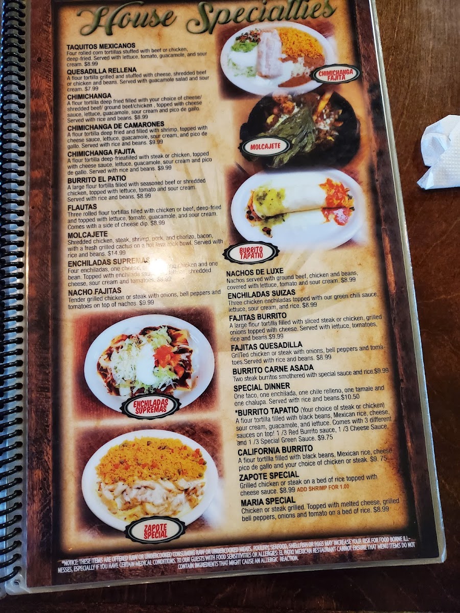 El Patio Menu